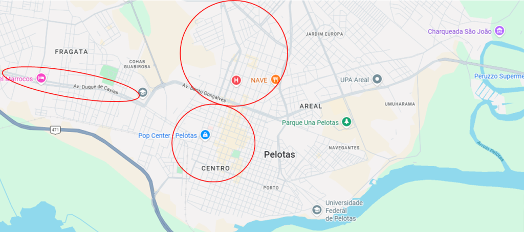 Pelotas oferece diversas opções de hospedagem, que vão de hotéis e pousadas aconchegantes no centro histórico a acomodações próximas à Praia do Laranjal, atendendo a diferentes perfis de visitantes e orçamentos. Recomendamos as regiões demarcadas no mapa para sua hospedagem para o evento.